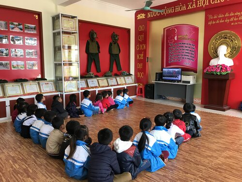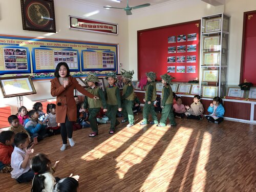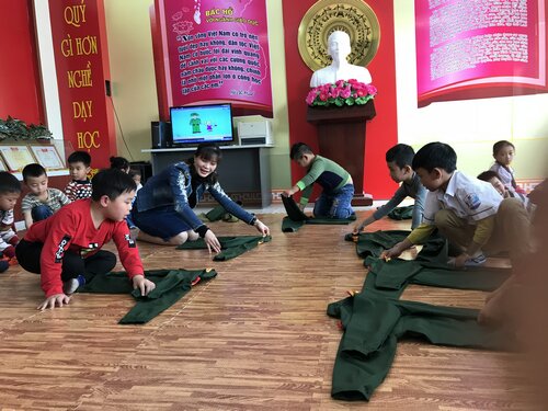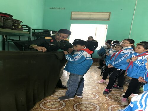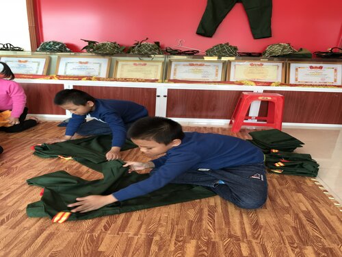 Cùng với các hoạt động của khối 4-5, các em học sinh khối lớp 1; 2; 3 cũng đã được tham gia các hoạt động trải nghiệm, giáo dục kỹ năng sống tại phòng truyền thống của nhà trường. Tại đây, các em không chỉ được thăm quan, tìm hiểu về những thành tích, quá trình xây dựng, phát triển và trưởng thành của nhà trường mà còn được ôn lại ý nghĩa lịch sử của ngày thành lập QĐND Việt Nam, đặc biệt là tìm hiểu về quân trang, quân phục của các chú bộ đội qua những phóng sự và lời giới thiệu của cô Trần Minh Nghĩa- TPT Đội. Các em còn được khoác trên mình những bộ trang phục ấy qua phần giao lưu "Em làm chú bộ đội". Bên cạnh đó để học tập tác phong của anh bộ đội Cụ Hồ các em học sinh còn được các thầy cô giáo hướng dẫn thực hành gấp và sắp xếp quần áo gọn gàng, ngăn nắp trong sinh hoạt hàng ngày.